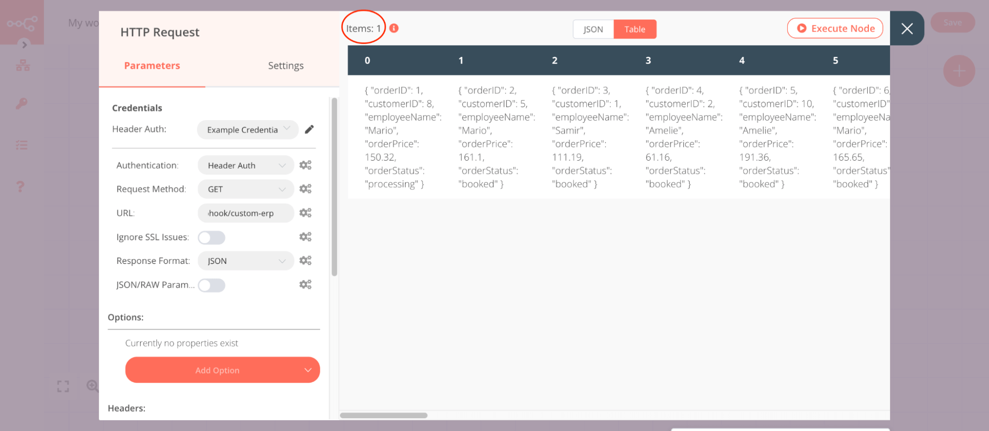 For example, the image below shows the output of an HTTP Request node that returns data incompatible with n8n's data structure. The node returns the data and displays that only one item was returned.