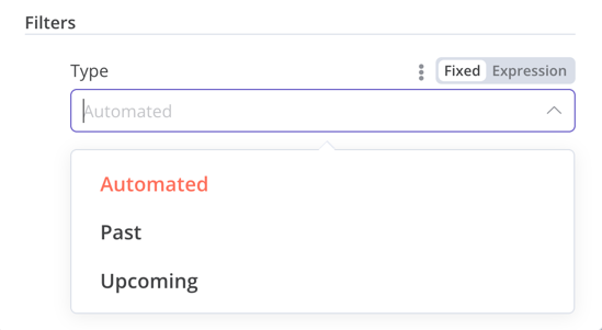 // Supported types: string, number, dateTime, boolean, time, array, object, options